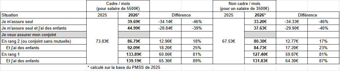 Votre participation à la cotisation du régime obligatoire commun au groupe augmentera elle de 1,2€ (~3%) là où la moyenne d’augmentation des complémentaires sur la même période est de plus de 14%.